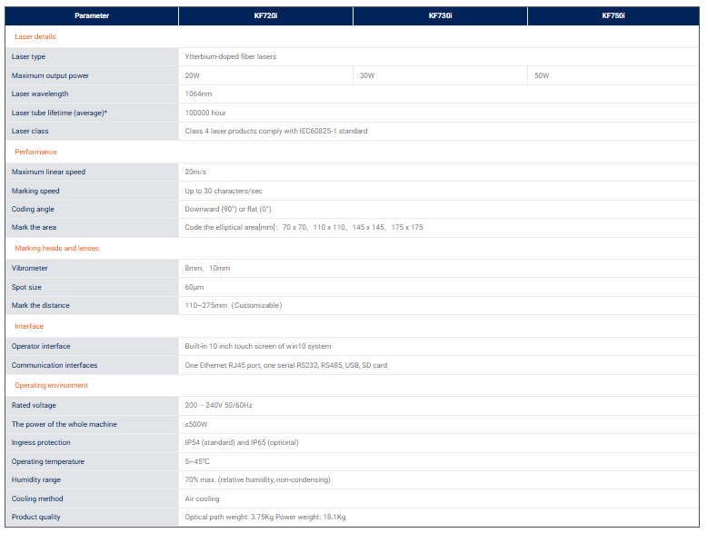 | Thông số kỹ thuật | KF720i | KF730i | KF750i |