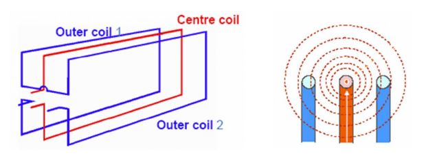 Máy dò kim loại tạo ra một tia sóng điện từ (thường là sóng từ trường hoặc sóng điện từ RF) thông qua một cuộn cảm và một bộ dao động hoặc bộ kích thích.
